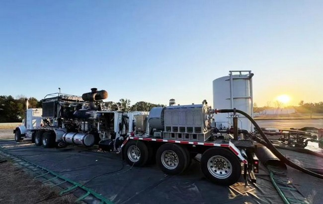 ▲ 配有杰瑞盘古泵的压裂设备用于美国井场