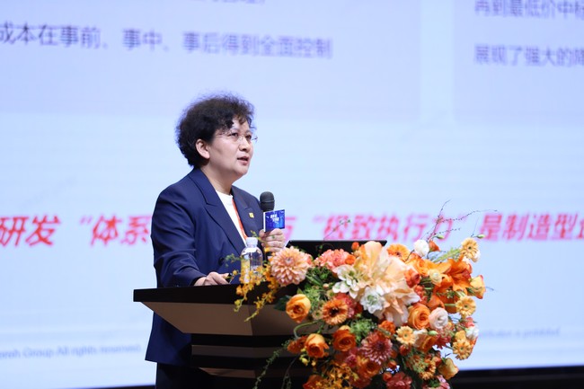 集团副总裁江浩女士带来《从设计源头塑造产品优势》报告。她指出,研发体系必须通过“体系化管控”与“极致执行力”,以过硬产品打赢市场硬仗。