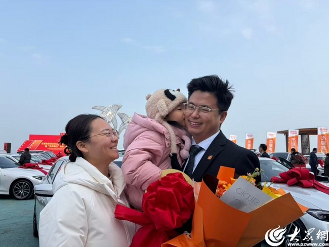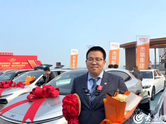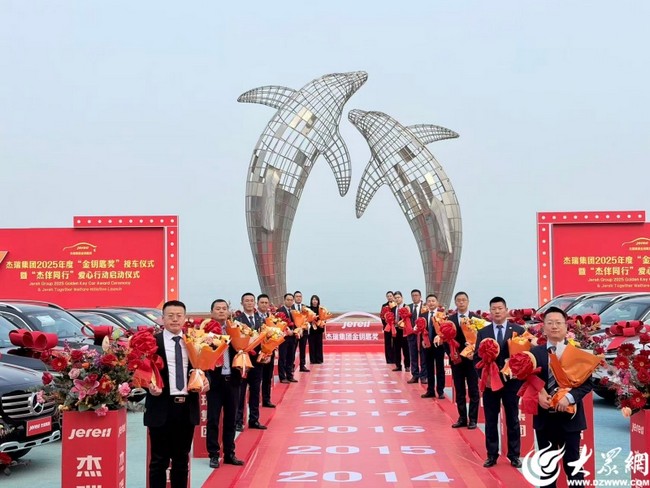 这是杰瑞集团2025年度“金钥匙奖”授车仪式现场的动人一幕。