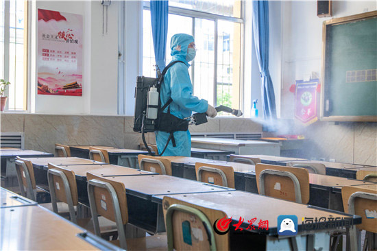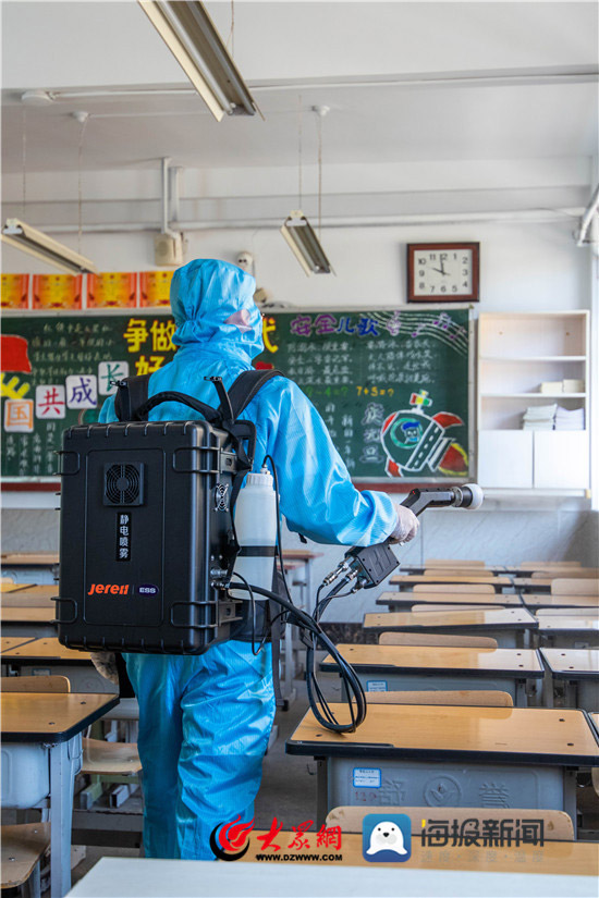 烟台葡萄山小学利用杰瑞华创静电喷雾消毒设备进行校园消杀迎开学
