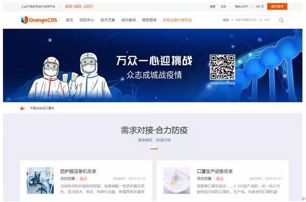 橙色云“防疫设备需求对接专区”