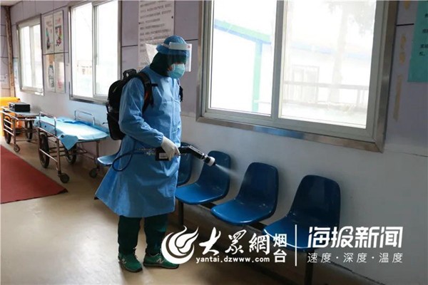 医护人员使用新型喷雾消毒设备开展消毒工作