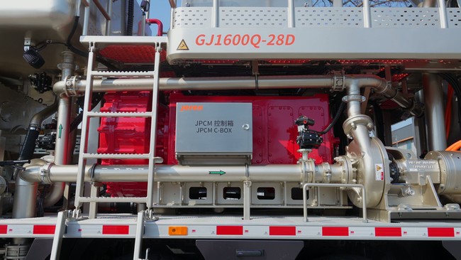 杰瑞全工况电驱固井装备取消传统液压系统与变速箱,采用电机直驱技术,实现排量无级连续、精准调节,设备运行更平稳、响应更迅捷。三电系统防护等级达IP67,电机效率高达97%,控制器效率达99%,可适应油田各类极端作业工况,在可靠性、耐用性、能效上全面超越传统设备。
