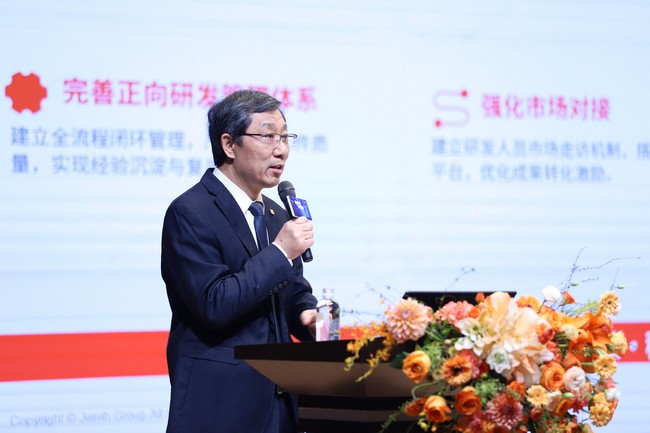 集团副总裁江浩女士带来《从设计源头塑造产品优势》报告。她指出,研发体系必须通过“体系化管控”与“极致执行力”,以过硬产品打赢市场硬仗。