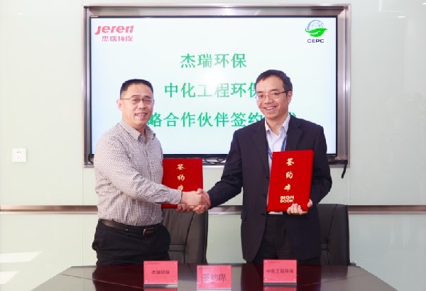 11月24日,杰瑞环保科技有限公司与中化工程集团环保有限公司在北京签署《技术与市场战略合作协议》。杰瑞环保科技有限公司董事长王丕学与中化工程集团环保有限公司总工程师郭海欣代表双方签约。