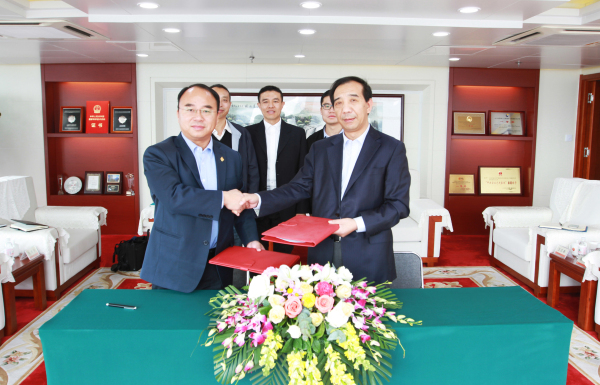 杰瑞CEO何翌(左)与中国石油工程建设公司华东设计分公司总经理兼党委副书记王国庆先生(右)代表双方签字