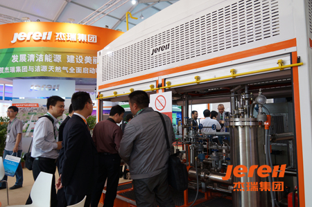 展会现场,杰瑞展示了橇装CNG加气站、橇装LNG加气站、制冷剂压缩橇等设备,并充分展示了在天然气液化方面的研发生产实力,吸引不少客户在现场征订设备。杰瑞的亮相吸引了《中国能源报》、《国际能源网》、《中国天然气工业网》、《全球石油化工网》、《压缩机》杂志等30余家行业媒体的跟踪报道,数十家网络媒体进行了转载报道。如《中国天然气工业网》以《杰瑞携天然气产业一体化解决方案华丽亮相NGV展会 助力清洁能源》为题,对杰瑞积极拓展天然气产业给予了高度评价,文章称:“这家以制造高端石油装备闻名的上市集团,首次参展便推出了从天然气液化,储存和运输,接收和汽化到终端利用上下游各环节相配套的整个天然气产业一体化解决方案。从移动式场站设计到MRC混合制冷工艺流程都体现了杰瑞领先的研发优势。”